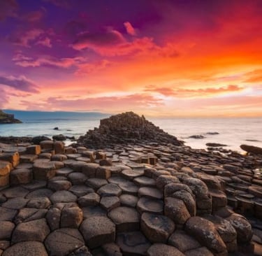 In ages past, so the legend holds, a magnificent natural bridge spanned the waters between Giant's Causeway on the Irish coast and Fingal's Cave upon the Scottish isle. Each nation had its Guardian Giant, sworn to protect the peasantry from devastation and threat. One bright morning, the Scottish Giant, possessed of considerable confidence but insufficient wisdom, concluded that a single protector might suffice for both lands. Ignoring the ancient truth that no man — nor Giant — is an island entire unto himself, he commenced his thunderous march across the bridge toward Ireland.